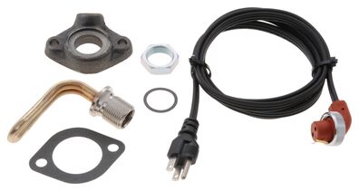 The Zerostart 8601291 750 Watt 120 Volt engine heater with 2-Bolt plate adapter and water port, includes power cord. Replacement power cord 3600008.
