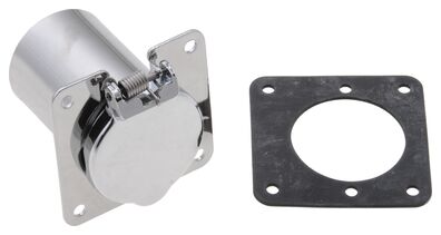 The Zerostart 8606080 weatherproof receptacle fits all Zerostart weatherproof plugs. The square flange receptacle is chrome plated with a 4-bolt mount. This model does not have indicator light capabilities.